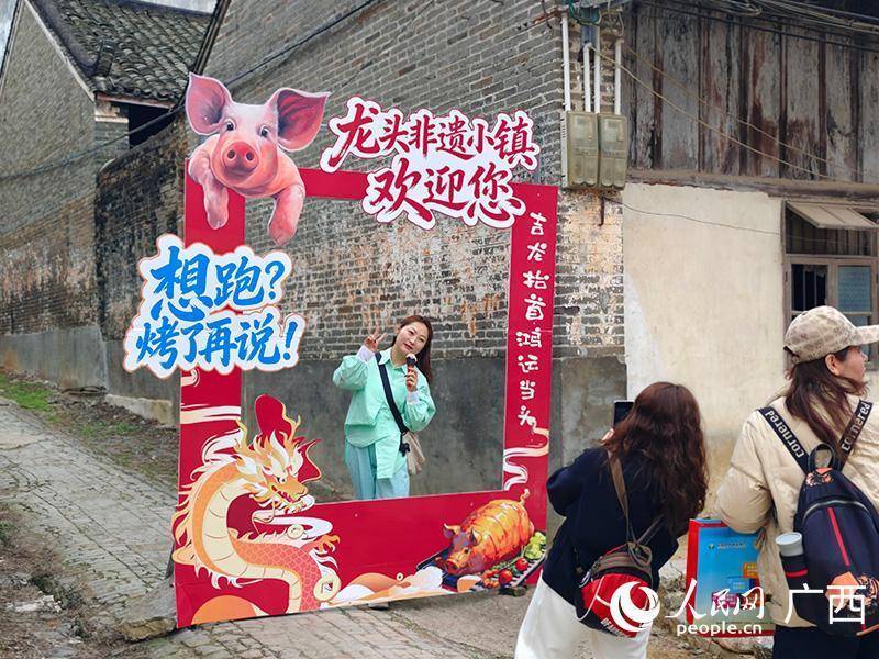 游客在“龙头非遗小镇”趣味打卡框前留影。人民网记者 沈泉池摄
