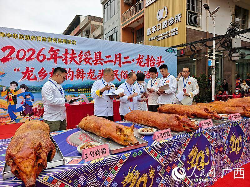 非遗美食、趣味竞技同步上线,龙头烤猪比拼香气四溢,抓龙猪、文创市集、民俗体验等环节人气爆棚。当地以“文化搭台、产业唱戏”,推动非遗技艺、乡土美食与文旅产业深度融合,让百年民俗成为激活乡村振兴的强劲引擎。